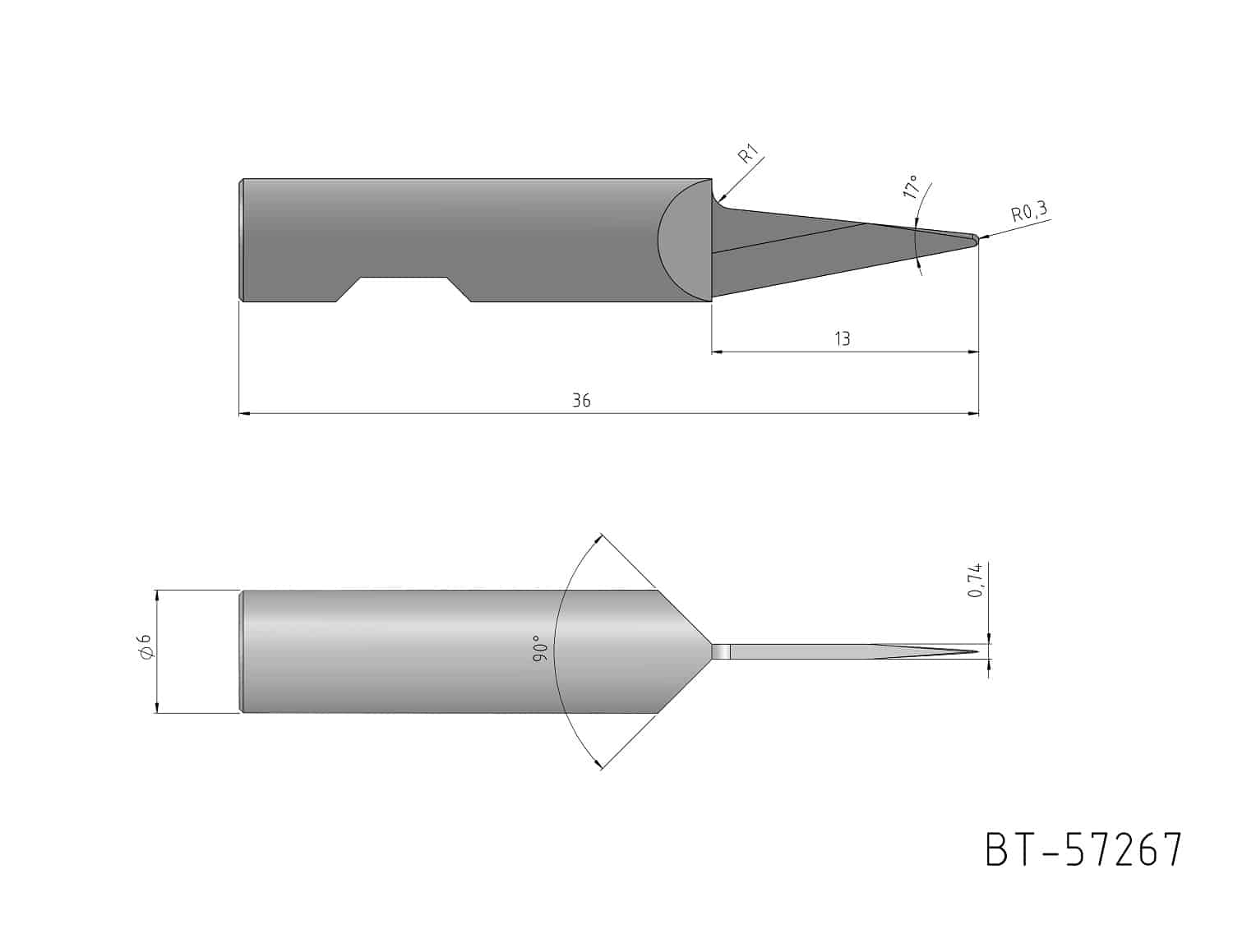 Rundschaftmesser, einschneidig, runde Spitze Center, H- Material