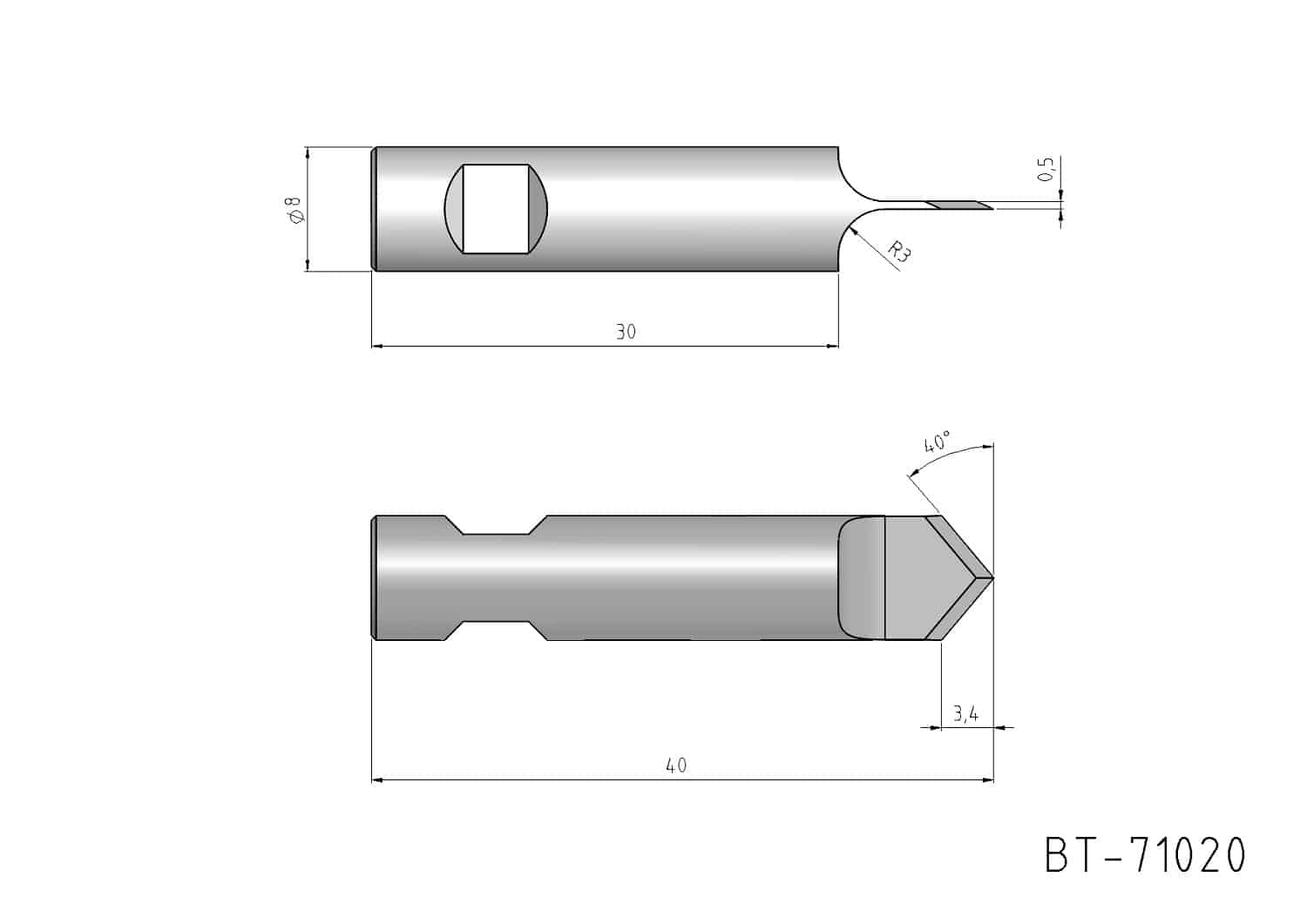 Rundschaftmesser, oszillierend, Doppelklinge