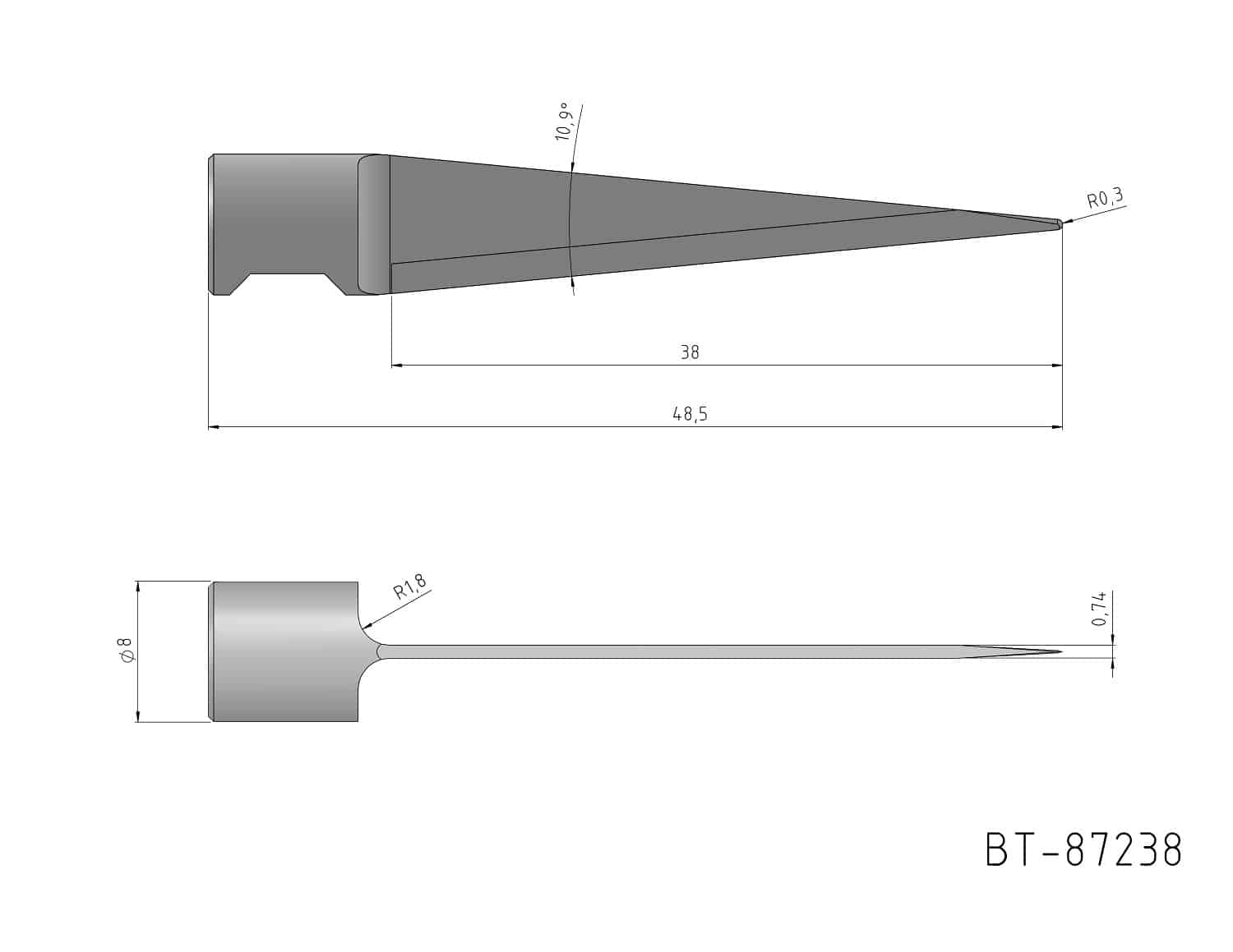 Rundschaftmesser, einschneidig, runde Spitze im Center