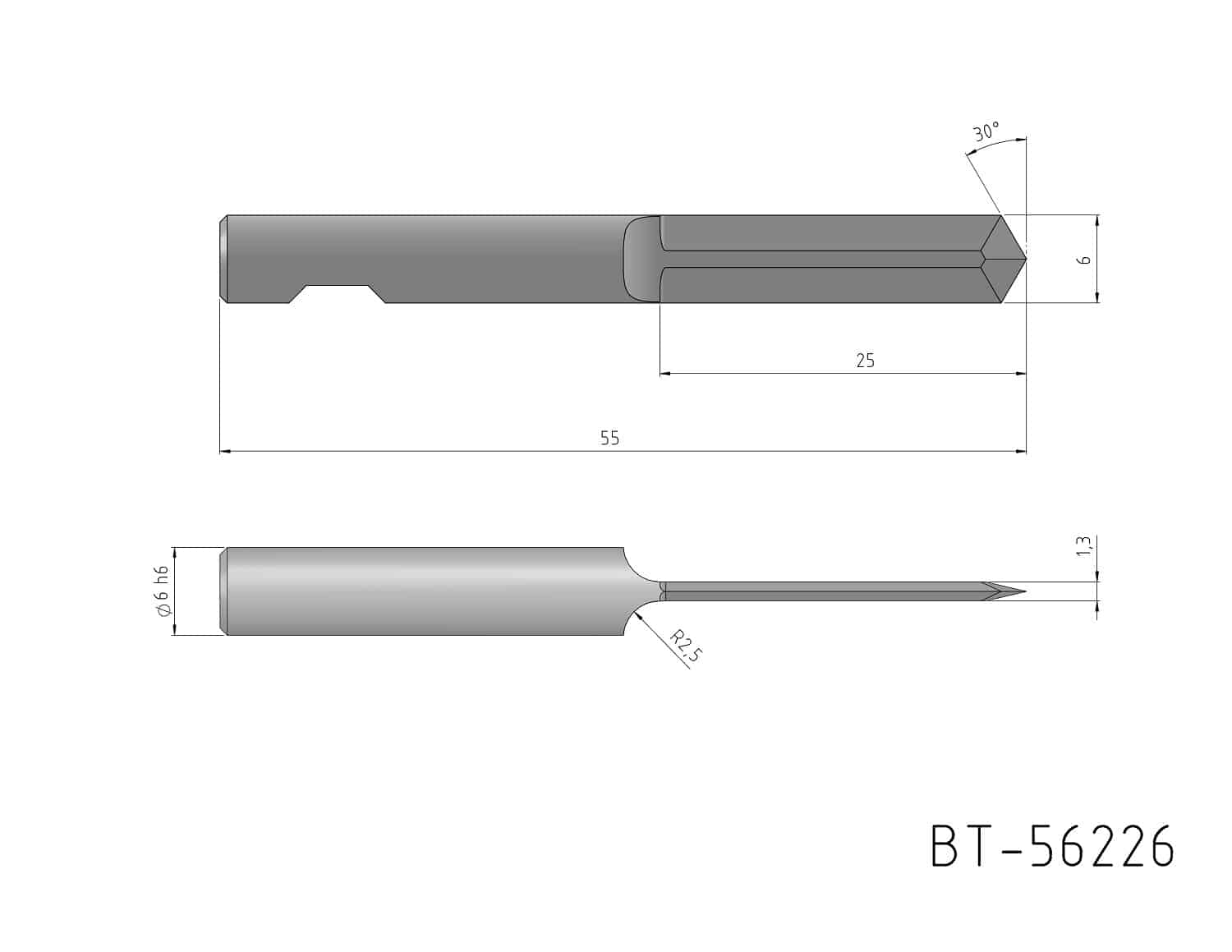 Round Shank Knife Blade, single- edged, oscillating