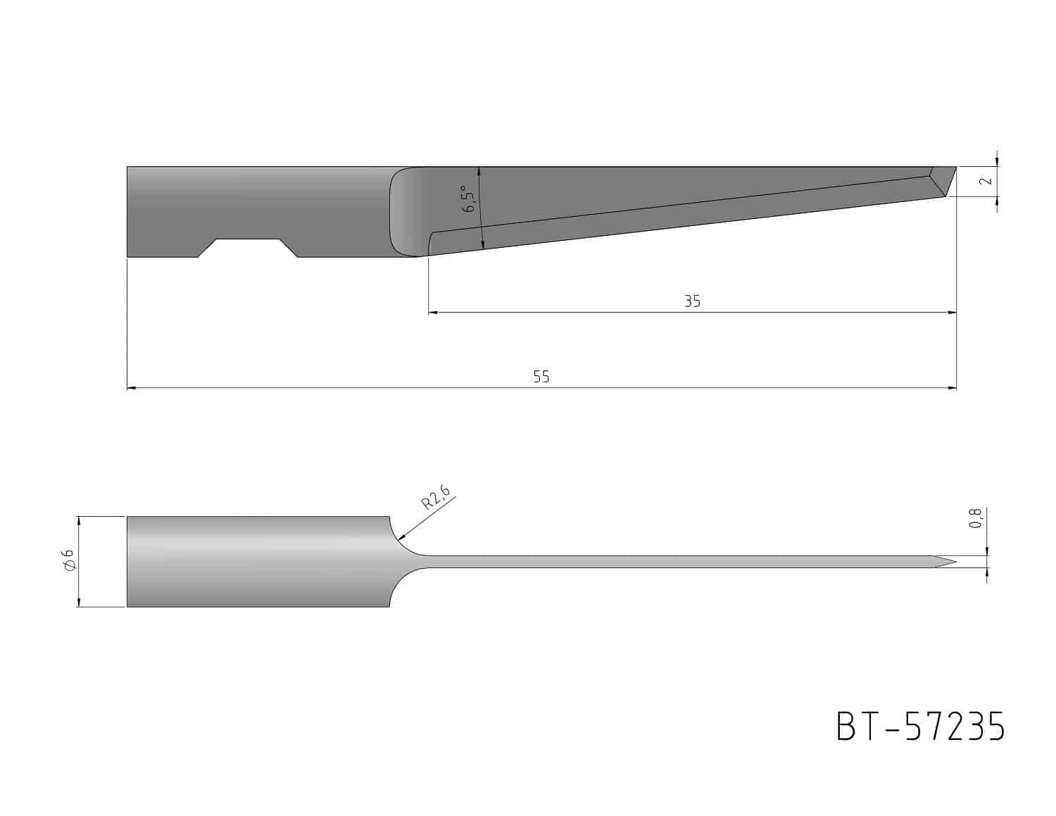 Round Shank Knife Blade, single- edged, oscillating