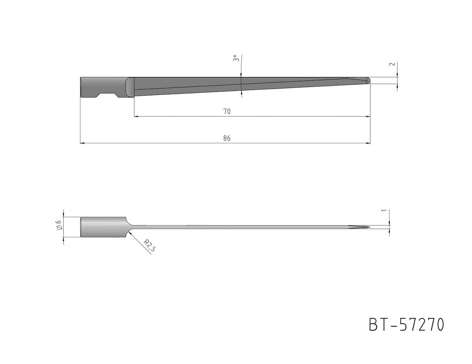 Round Shank Knife Blade, single edged, oscillating, rounded tip