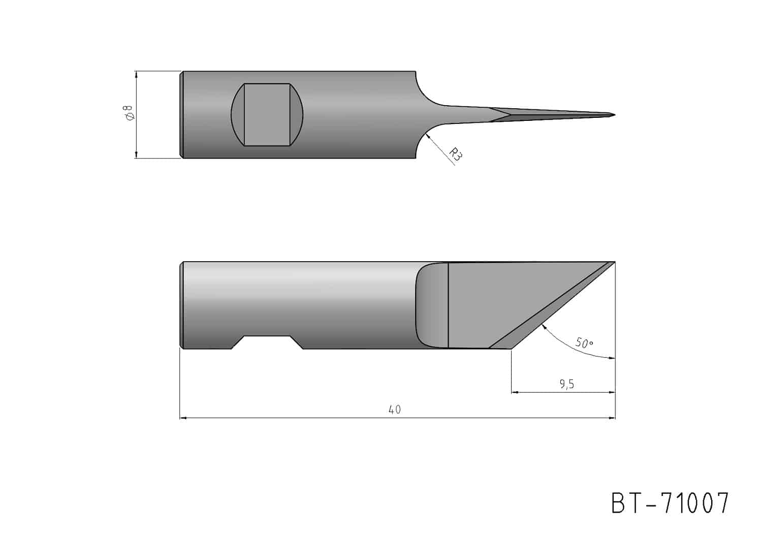 Round Shank Knife Blade, single- edged, oscillating