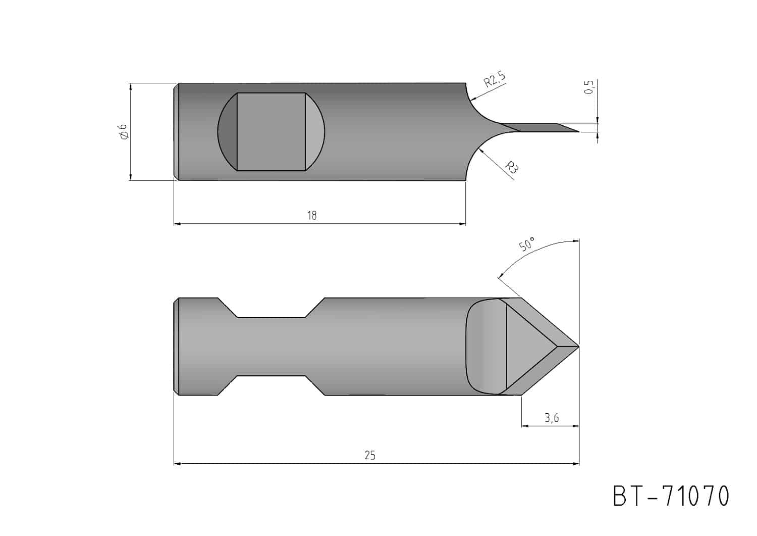 Round Shank Knife Blade, double- edged, oscillating