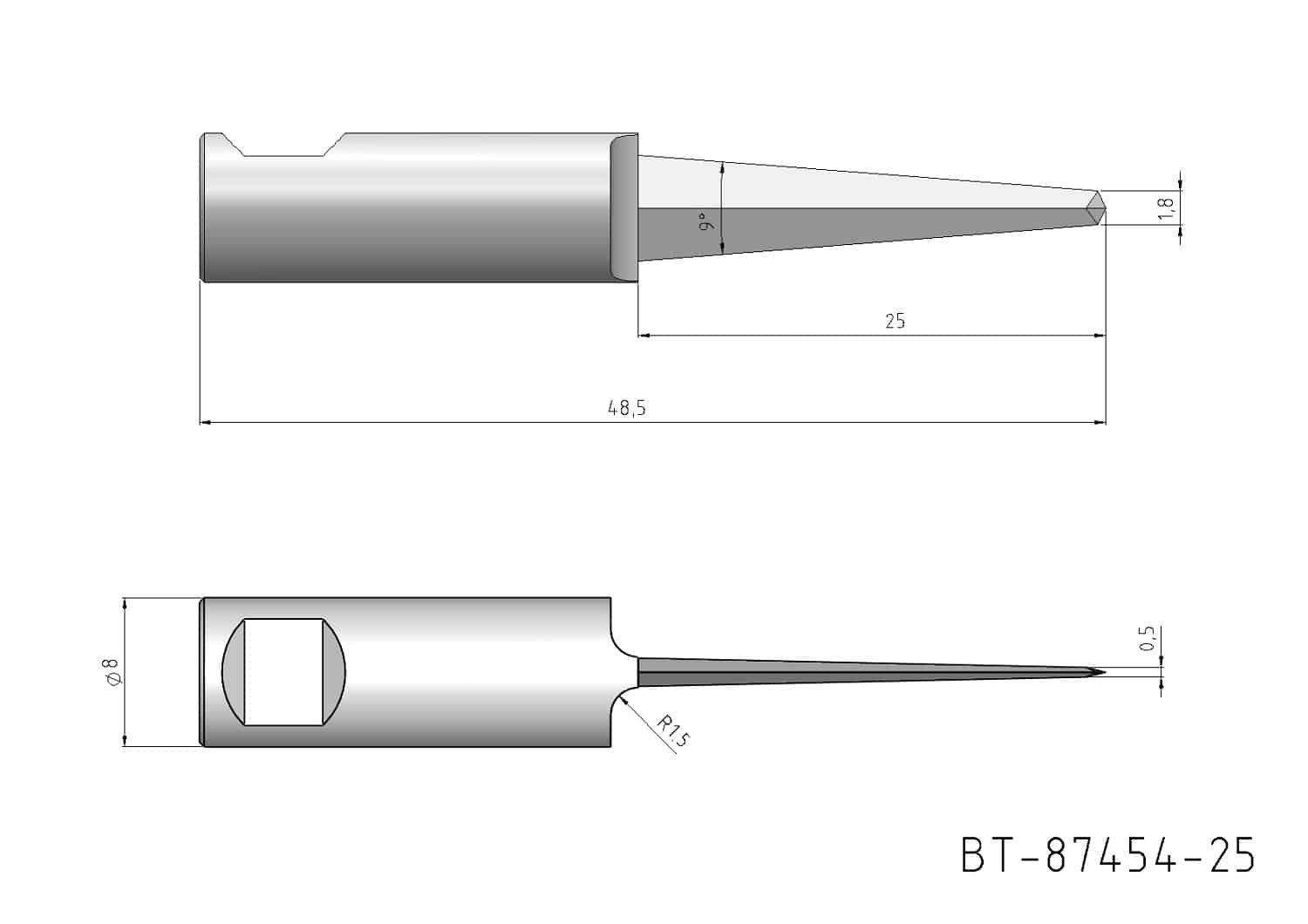 Round Shank Knife Blade, double- edged